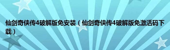 导读 您好,现在柳柳来为大家解答以上的问题。仙剑奇侠传4破解版免安装,仙剑奇侠传4破解版免激活码下载相信很多小伙伴还不知道,现在让我们一起来