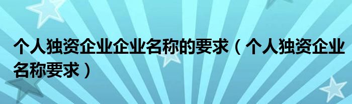 1、个人独资企业的名称在法律上的要求:根据个人独资企业法第11条规定可知:个人独资企业的名称应当与其责任形式及从事的营业相符合。