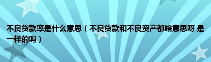 您好,现在柳柳来为大家解答以上的问题。不良贷款率是什么意思,不良贷款和不良资产都啥意思呀 是一样的吗相信很多小伙伴还不知道,现在让我们一起来看看吧!
