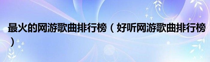 您好,现在柳柳来为大家解答以上的问题。最火的网游歌曲排行榜,好听网游歌曲排行榜相信很多小伙伴还不知道,现在让我们一起来看看吧!