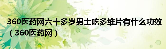 您好,现在柳柳来为大家解答以上的问题。360医药网六十多岁男士吃多维片有什么功效,360医药网相信很多小伙伴还不知道,现在让我们一起来看看吧!