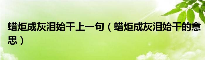 导读 您好,现在柳柳来为大家解答以上的问题。蜡炬成灰泪始干上一句,蜡炬成灰泪始干的意思相信很多小伙伴还不知道,现在让我们一起来看看吧!1、