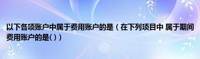 导读 您好,现在柳柳来为大家解答以上的问题。以下各项账户中属于费用账户的是,在下列项目中 属于期间费用账户的是( )相信很多小伙伴还不知道,