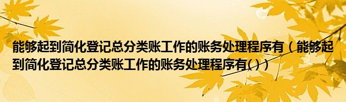 导读 您好,现在柳柳来为大家解答以上的问题。能够起到简化登记总分类账工作的账务处理程序有,能够起到简化登记总分类账工作的账务处理程序有(
