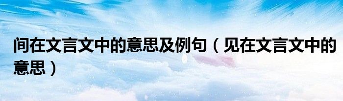 您好,现在柳柳来为大家解答以上的问题。间在文言文中的意思及例句,见在文言文中的意思相信很多小伙伴还不知道,现在让我们一起来看看吧!