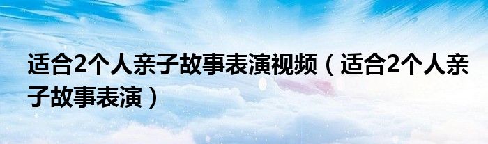 导读 您好,现在柳柳来为大家解答以上的问题。适合2个人亲子故事表演视频,适合2个人亲子故事表演相信很多小伙伴还不知道,现在让我们一起来看看吧