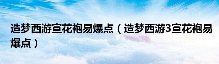 您好,现在柳柳来为大家解答以上的问题。造梦西游宣花袍易爆点,造梦西游3宣花袍易爆点相信很多小伙伴还不知道,现在让我们一起来看看吧!