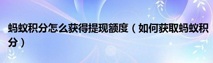 您好,现在柳柳来为大家解答以上的问题。蚂蚁积分怎么获得提现额度,如何获取蚂蚁积分相信很多小伙伴还不知道,现在让我们一起来看看吧!