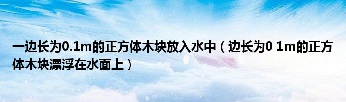 您好,现在柳柳来为大家解答以上的问题。一边长为0.1m的正方体木块放入水中,边长为0 1m的正方体木块漂浮在水面上相信很多小伙伴还不知道,现在让我们一起来看看吧!