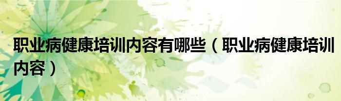 您好,现在柳柳来为大家解答以上的问题。职业病健康培训内容有哪些,职业病健康培训内容相信很多小伙伴还不知道,现在让我们一起来看看吧!