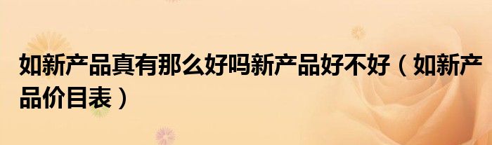 导读 您好,现在柳柳来为大家解答以上的问题。如新产品真有那么好吗新产品好不好,如新产品价目表相信很多小伙伴还不知道,现在让我们一起来看看吧