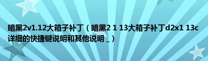 导读 您好,现在柳柳来为大家解答以上的问题。暗黑2v1 12大箱子补丁,暗黑2 1 13大箱子补丁d2x1 13c 详细的快捷键说明和其他说明 _相信很多
