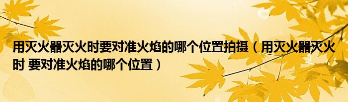 导读 您好,现在柳柳来为大家解答以上的问题。用灭火器灭火时要对准火焰的哪个位置拍摄,用灭火器灭火时 要对准火焰的哪个位置相信很多小伙伴还