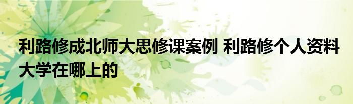 导读 大家好,知识小编来为大家解答以上的问题。利路修成北师大思修课案例 利路修个人资料大学在哪上的很多人还不知道,现在让我们一起来看看吧
